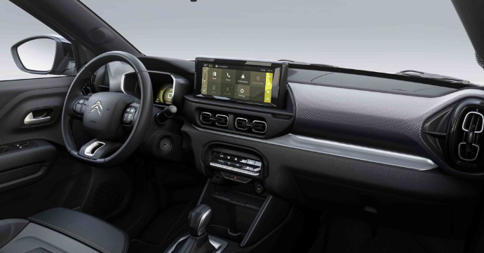 No entanto, é no interior onde a transformação é mais evidente e onde a Citroën realmente investiu em uma experiência sensorial aprimorada. O painel, um dos pontos centrais da interação com o veículo, no modelo indiano, ganha um acabamento em couro sintético do lado do passageiro, enriquecido por costuras vermelhas contrastantes. Essa combinação de materiais e cores não é aleatória; ela foi cuidadosamente pensada para criar uma atmosfera mais escura e aconchegante, ao mesmo tempo que adiciona um toque de esportividade e luxo. As mesmas costuras vermelhas se repetem nos bancos, que provavelmente ganharão revestimentos exclusivos, e no volante, onde a empunhadura se torna não apenas mais agradável, mas também visualmente mais atraente. Essa alquimia de cores e texturas eleva o ambiente da cabine, criando uma experiência que vai além do funcional, tocando o emocional e o estético.